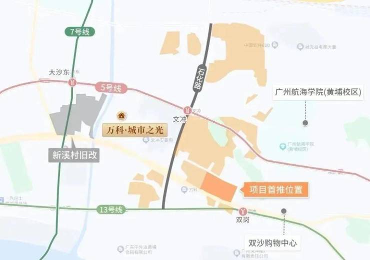 首推的融资区就在黄埔东路边上,周围有文冲站和双岗站,分别对应的是5号和13号线。