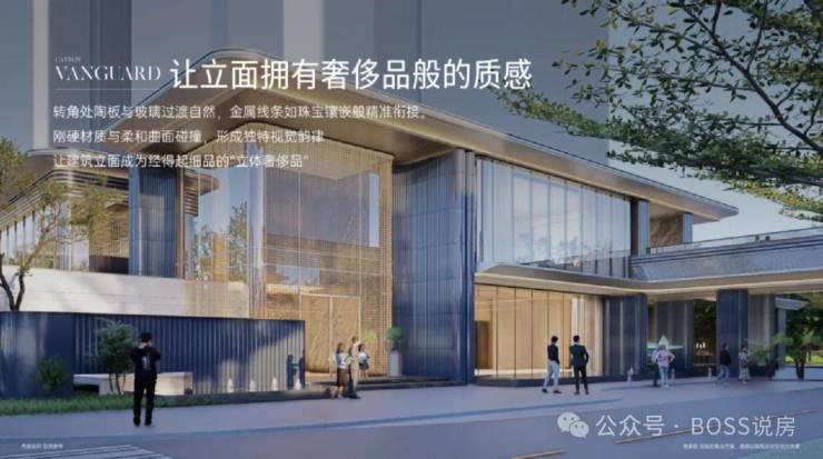 【尊崇归家】——主入口参考浅水湾豪宅设计理念,在静谧氛围中充满仪式感的落客体验,兼顾社区管理私属感;长达百米的先锋形象界面,叠加独属的社区地雕徽章,彰显高奢定位。