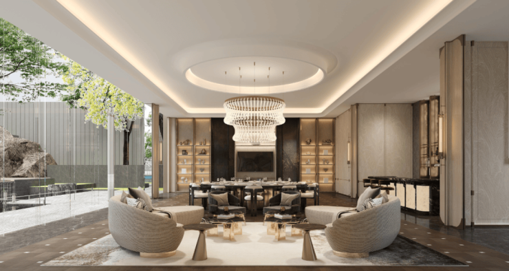 LDKGB一体化厅区设计,面积直逼100㎡,化身奢豪社交主场,无论身处客厅、餐厅或厨房,皆能感受空间带来的包容感与自由度。