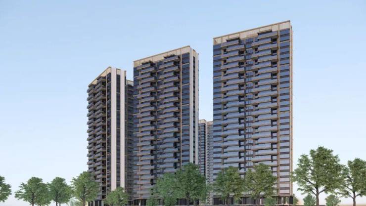 S2地块西侧2栋住宅楼与东侧3栋住宅楼地块间以连廊相连。
