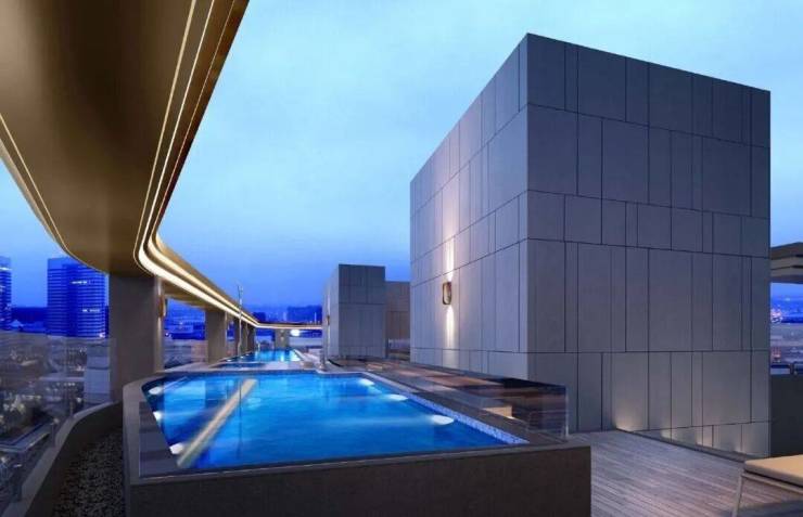 立面·新地标:参考游轮风格打造的外立面,玫瑰金点缀铝板装饰,采用气密性、水密性、隔音隔热方面有更高性能的系统,同时窗户之间采用内嵌进墙体的技术,让每个房间都达到最安静的效果。