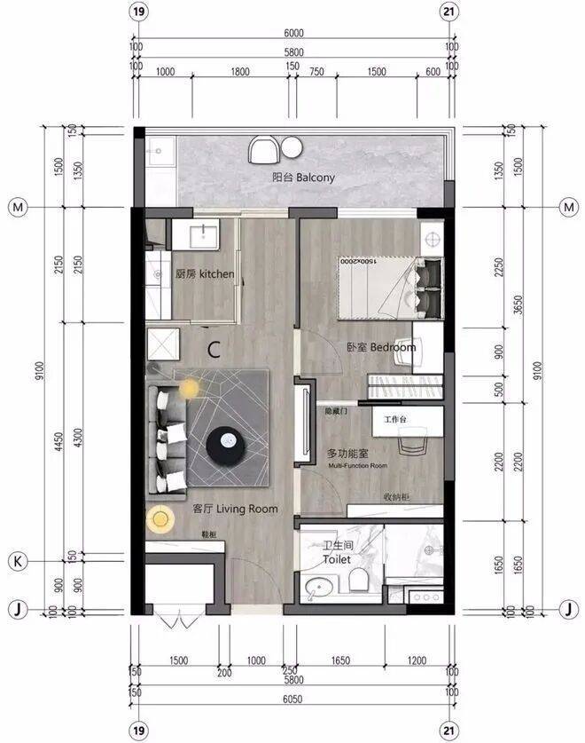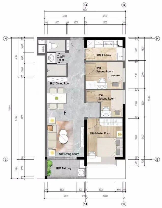 主卧带有南向阳台,算是一个卖点。当然,也可以根据实际需求,将阳台改成卧室一部分。
