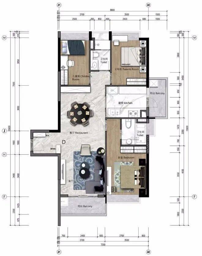 82㎡户型,乍看直厅户型,做了3房好像整体也比较中规中矩是不是?