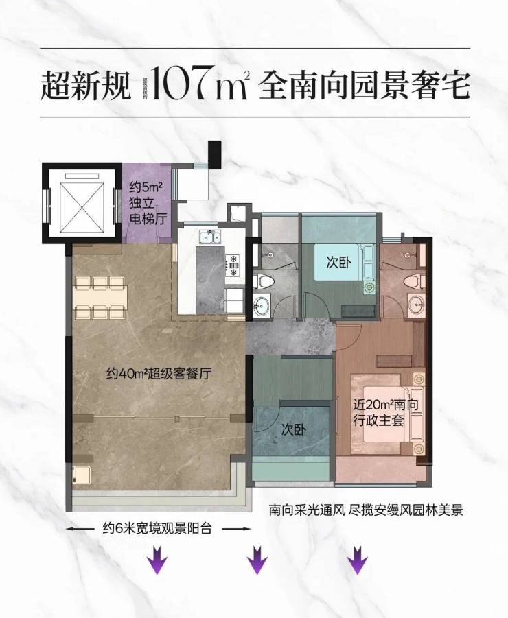 产品为107-170㎡全景舱板奢大平层,新规户型使用率高达115%!纯改善四房,全板式楼盘,100%南北对流,100%四开间朝南。