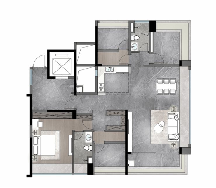 「港式户型」对标香港豪宅设计手法,空间布局注重业主自我及家人居住舒适性。