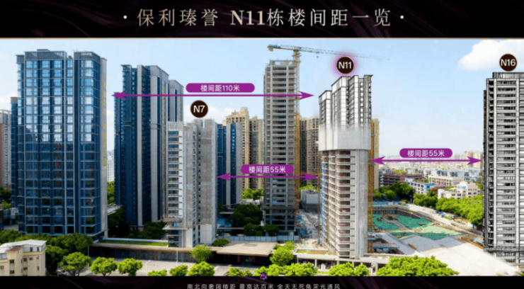 约55米楼间距(标准是50米),使每栋楼的视线和面宽最大化,保障业主隐私,做到视野景观最佳。