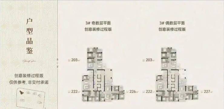 226/227㎡户型特点: 4T3户,均有独立电梯及门厅互不扰; ·8*8.4m大方厅,宽敞大气; ·超款客厅落地景观面,客厅、阳台、众数套房可望 江望琶洲总部及广州塔,景观优势(无主阳台); ·有独立工人房但无赠送平台; ·主卧270°景观转角飘窗,800mm飘窗可打;