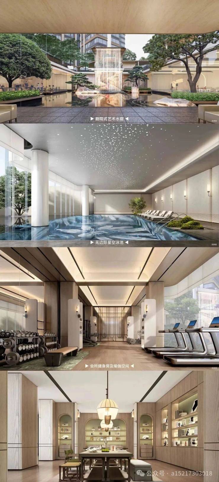 【园林设计——七园萦绕的岭南秘境】园林以"海丝文化"为脉络,打造"7+9+4"公园体系:7大主题园:南洋植物园、星空草坪、亲子双泳池等9重垂直绿化:双层架空泛会所+屋顶农场+垂直森林4季花境系统:引进紫花风铃木、蓝花楹等珍稀树种中心庭院借鉴新加坡金沙酒店设计理念,通过"水景叠瀑+镜面泳池"构成视觉通廊,实现"移步异景,四时皆画"的意境。