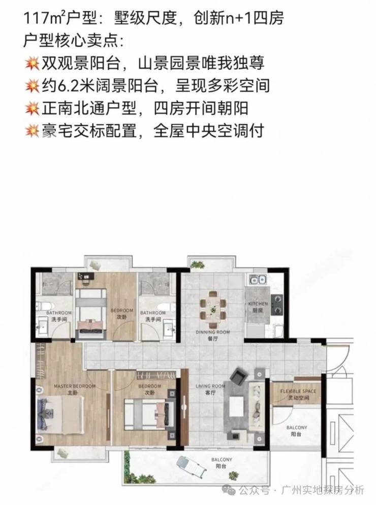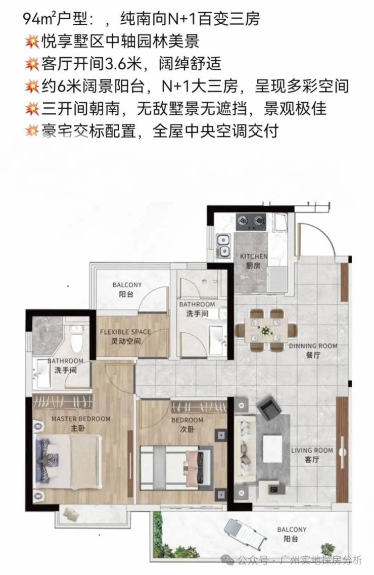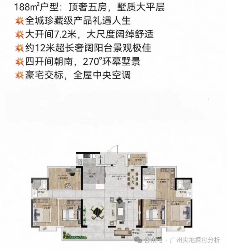 户型面积:94-125-155-188㎡大平层