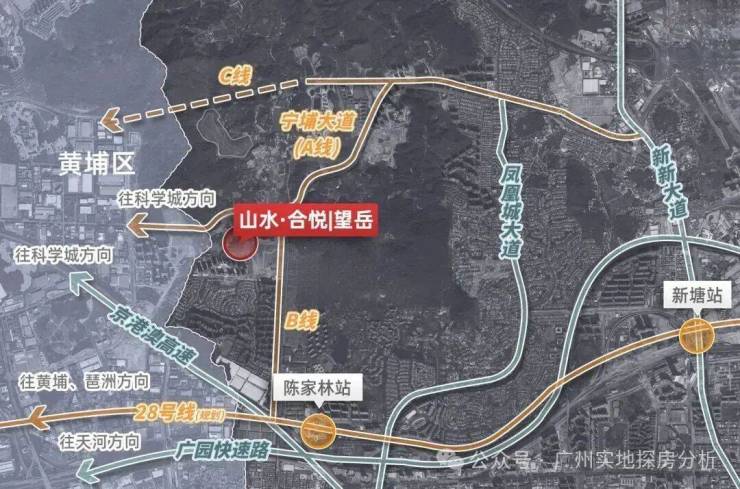 地铁出行有规划中的28号线的陈家林路站,距离项目大概只有900米左右,目前规划站点在合生湖山国际那边,但还是存在一定的不确定性地铁建好开通以后,坐地铁去天河、海珠、黄埔等区也非常方便。