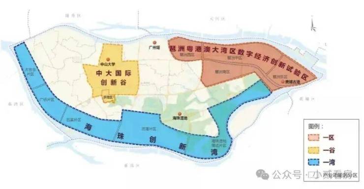 越秀·江湾潮起位于广州海珠创新湾核心区大干围板块,地处粤港澳大湾区中轴,正构建“一区一谷一湾”创新发展新格局,东部以琶洲试验区为龙头,南部以创新湾产业集聚区延伸发展,实现世界数字创新岛的区域想象。