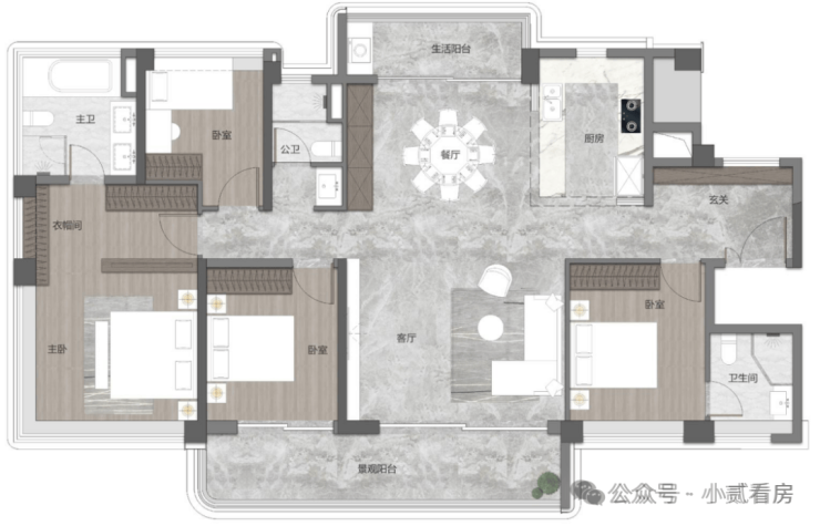 建面约119㎡四空间两厅两卫