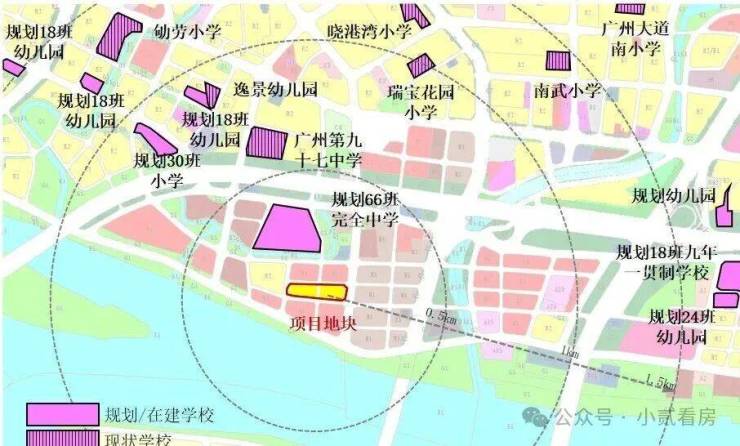 项目500米范围内规划有一所66班完全中学,1公里范围内有广州第九十七中学,1.5公里范围内有南武小学等。具体学区划分待进一步确认,但教育配套的优势已经显现。