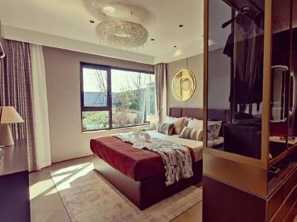 268㎡五房两厅四卫:楼王标杆,三梯两户,约 15 米南向景观阳台搭配 270° 转角飘窗,私密性与视野兼具,全屋奢装,彰显终改气质。