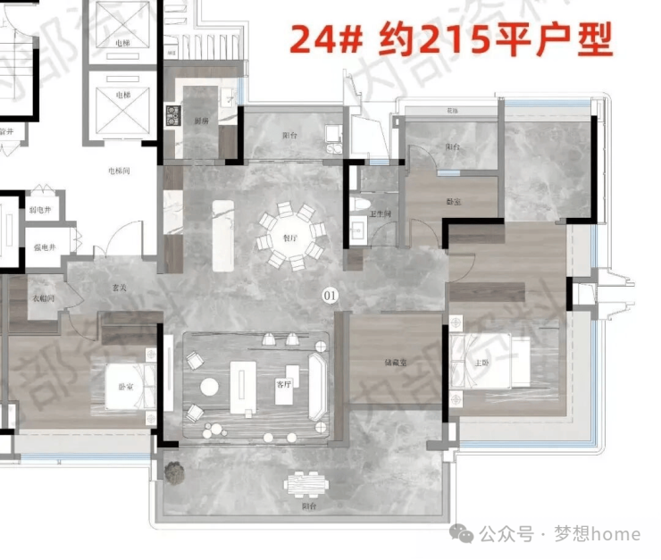 230平户型拥有私家电梯厅、双主套、独立佣人房、南北对流、LDKB大方厅、主卧L型270°飘窗等,大大提升了整体的空间体验。