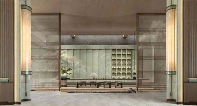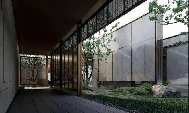 园林采撷《梁园飞雪图》画中意境及神韵,引入曲水飞虹、万顷涵碧、松间、观澜、林隐等景观组团,再现“枯山水”东方禅意画卷,缔造具有东方韵味的新中式之美。