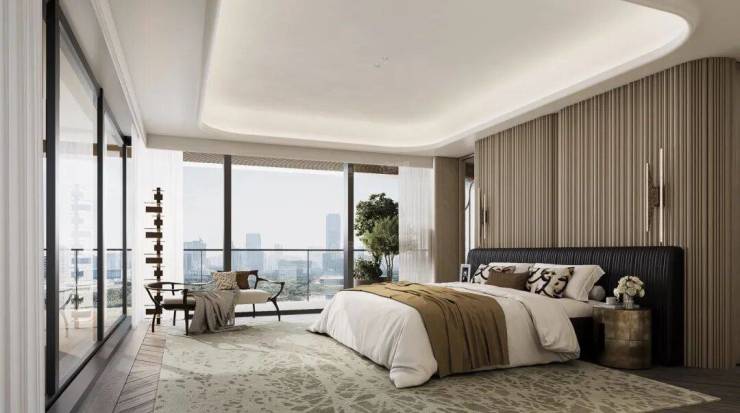 以建面约330㎡的主力户型为例,其南向面宽达10.8米,媲美独栋尺度;单层层高3.5米,远超常规豪宅,空间感开阔通透;上下叠均配备独立院门与专属归家动线,上叠拥有顶层露台,下叠设有下沉庭院,实现“互不打扰,各自安好”的居住自由。