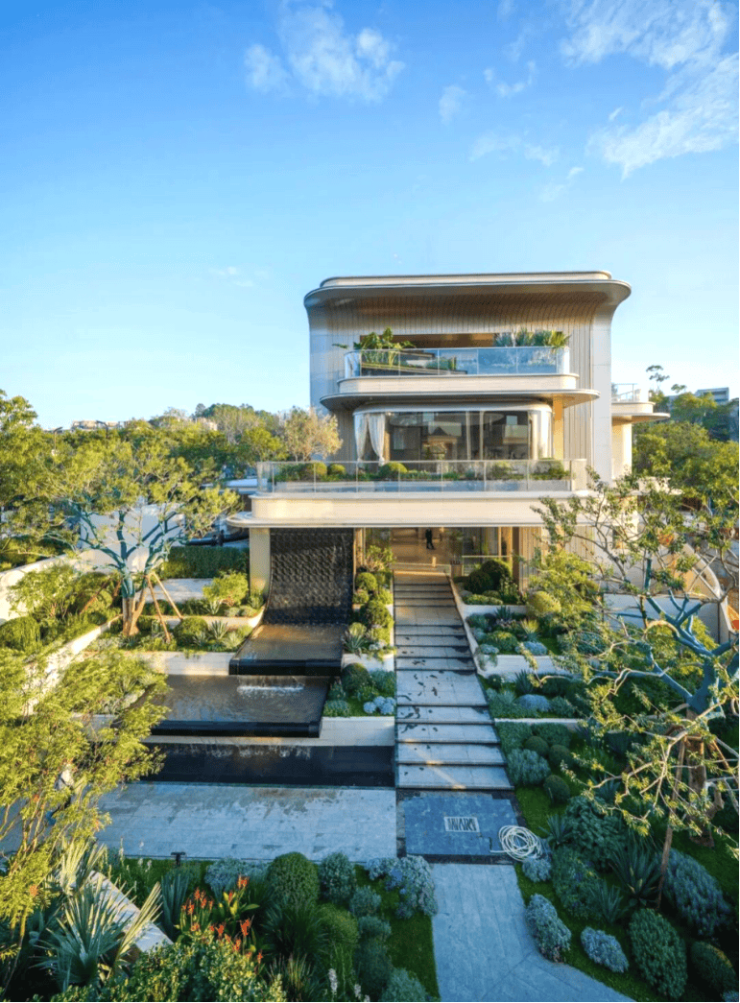 更值得一提的是,项目通过抬高坡地设计,实现全屋270°采光通风,地面庭院、首层社交厅、顶层私密套房、星空露台等功能空间垂直分布,满足家庭成员的个性化需求。