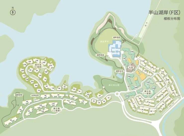 👉半山湖岸/湖畔小镇(F区)楼栋分布图