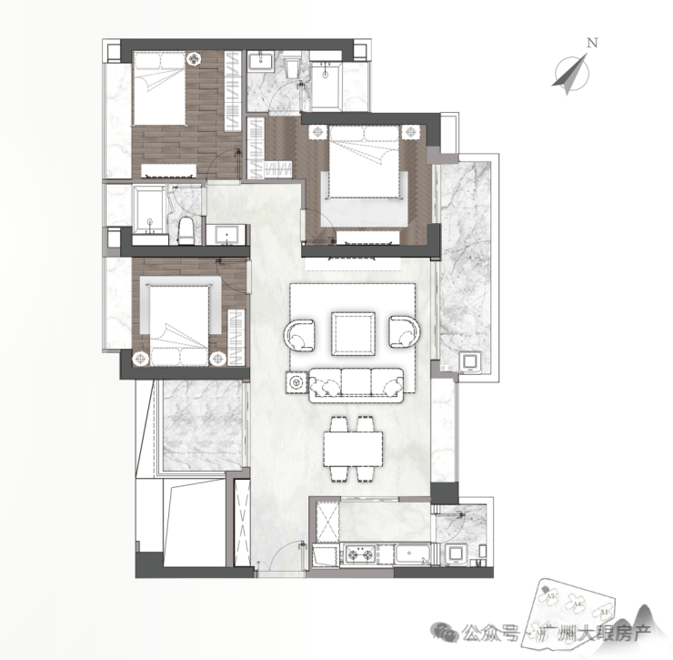 【A5-04户型】建筑面积约140㎡3+1房两厅两卫
