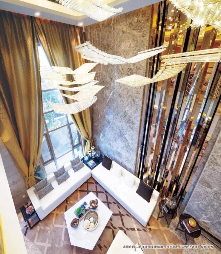 在室内设计上,项目还有极其奢华的做法:在玄关与客厅,都设计了6米双挑高。