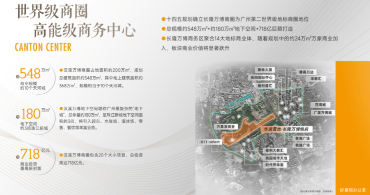 ◎广州十四五规划确定长隆万博商圈为广州第二世界级地标商圈,规划总占地面积约200万㎡,总建筑面积约548万㎡(规模相当于10个天河城),约368万㎡地上,约180万㎡地下(堪称广州最复杂地下城,是珠江新城地下空间的3倍,将引入大型超市、水族馆、零售、餐饮等)。