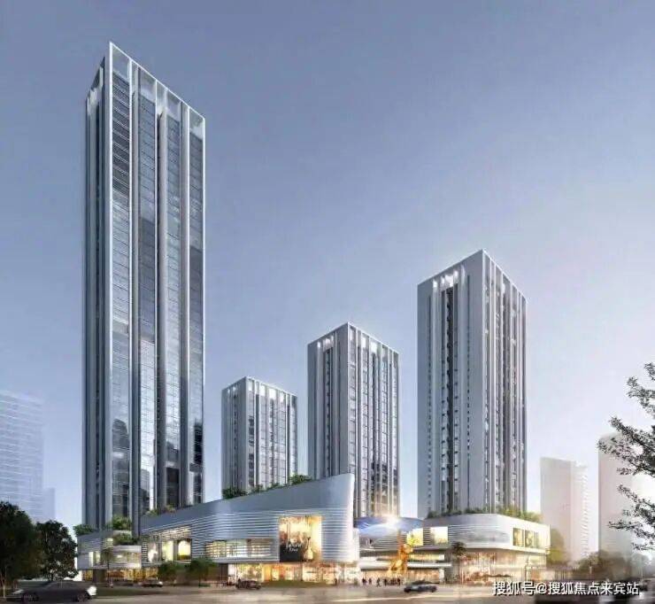 建筑立面:采用公建化设计,融合类幕墙体系与铝板材质,线条简洁流畅,光影下折射出现代轻盈的质感,于城市界面中彰显低调优雅的气质。