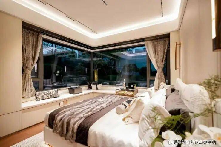 主卧配备270°三面飘窗,可灵活改造为衣柜区与梳妆台,提升收纳与空间实用性。