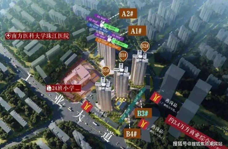 双地铁上盖:家门口即广佛线+11号线(已开通)燕岗站,真正“零距离”地铁房。11号线作为广州首条环线,换乘便捷,8站直达琶洲,7站(换乘)通达珠江新城,通勤效率极高。自驾方面,工业大道、江燕路、东晓南路等主干道环伺,轻松接驳全城。