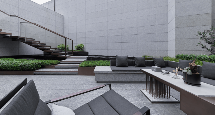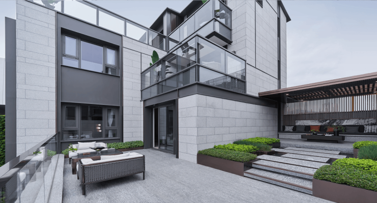 合悦层层配置星空大露台,甚至,地下空间利用高差做了一个阳光下沉花园。