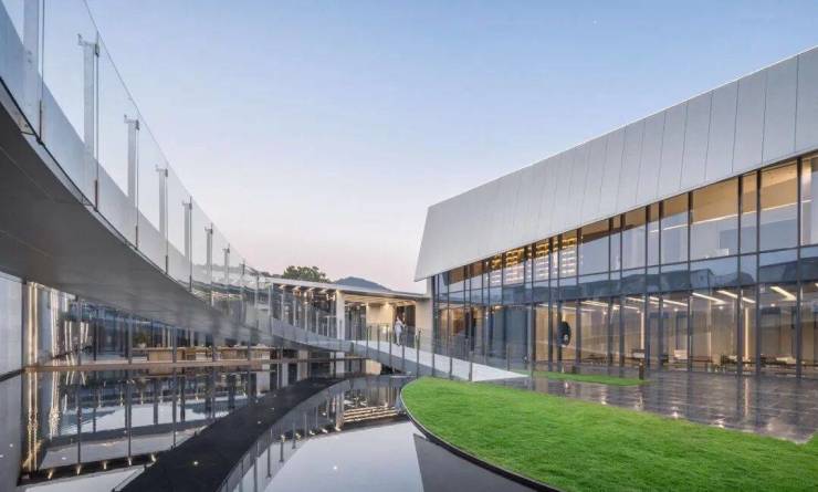 阶梯式书厅,与室外盈盈水景延展出无限诗意,为阅读增添意境。