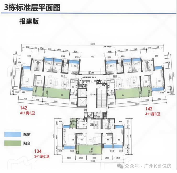 项目主推92-141㎡三至五房,全南向设计,主打高使用率,最高可以达到118%,关键词:110%+使用率、2梯3-5户、全南向。