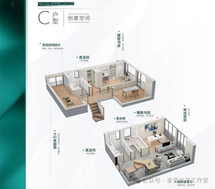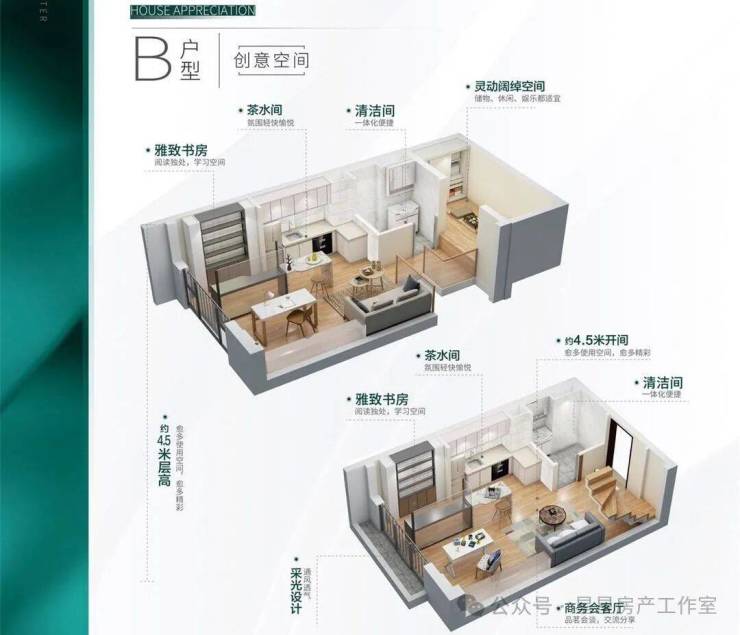 【每层层高】:4.5米(买一层用两层)