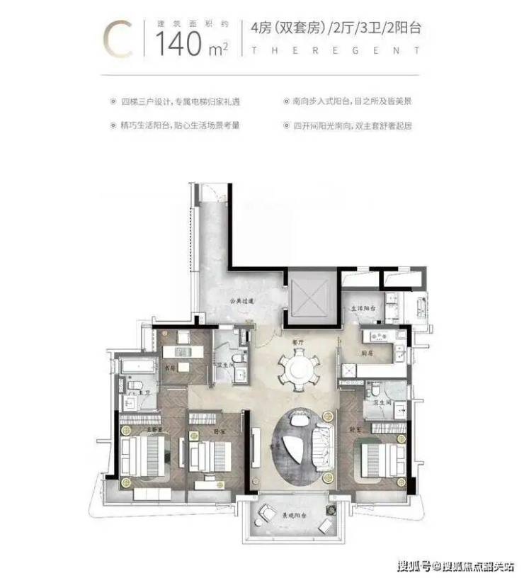 『天启』组团面积约140-250㎡环幕临江大平层,坐拥江景第一排,眺望小蛮腰,享500米宽阔无遮挡江景视野,并邀请三大全球知名设计大师倾力打造,并配备12大国际一线品牌交标,专梯专户四房双套房设计,世界灵感前沿作品礼献广州!