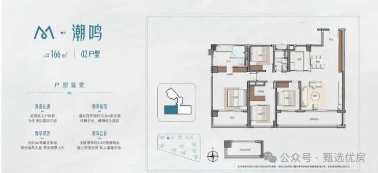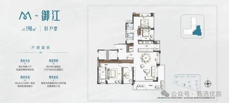 约8.1m宽幕主阳台,内可望园景 外可望江景+城景南向四开间约15.8m+主卧约4.4M观景阳台