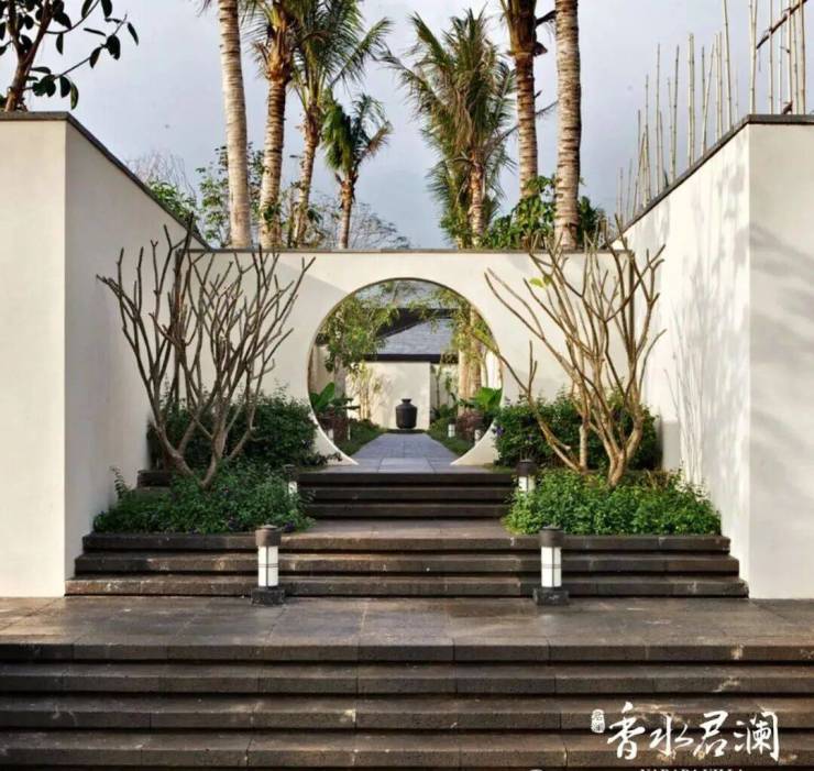 江南风纯独栋别墅群。香水君澜,俨然一座热带岛屿上的江南古镇。借江南民居聚落之形,以院墙围之,层层的廊檐,把世界关在围墙之外。