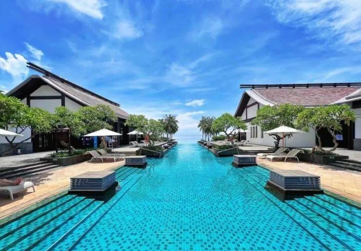 • 休闲娱乐:超长无边镜泳池,巴迪摩尔海景酒吧 ,潺SPA美容院 ,健身房,儿童乐园,棋牌室,台球室,中西餐厅,水乡情大堂吧
