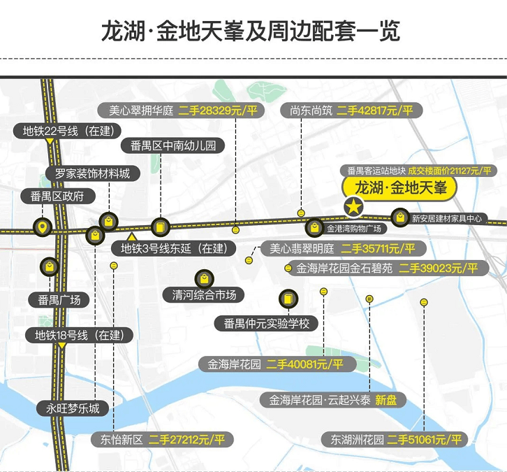 繁华盛景,悦享生活商业配套方面,项目自身规划约8万平方米的广州首座龙湖天街商业综合体,目前已动工建设。龙湖天街品牌在全国多城均已成为区域商业地标,集购物、餐饮、休闲、娱乐等多功能于一体,未来将成就“下楼即享万象繁华”的精彩生活。当前,周边金海岸购物广场、上河坊商业街、永旺梦乐城、钻汇广场、基盛万科里、中兴广场、番禺广场等成熟商业环伺,充分满足日常一切消费需求。