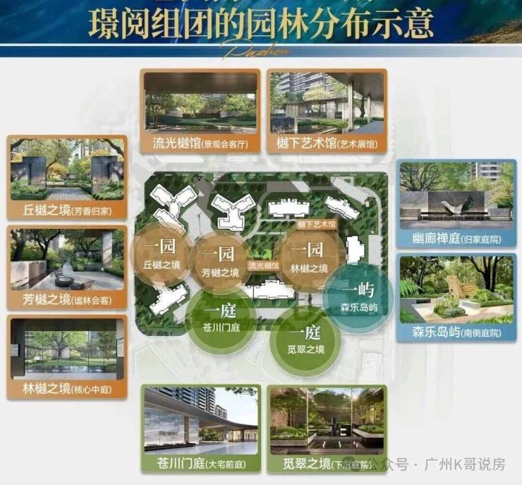 央园林整体实现“一园两庭一屿”多重景观布局。