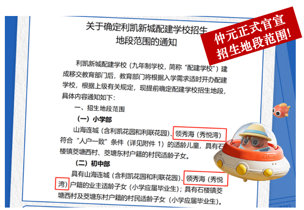 项目本身没有配建学校,旁边凯德小区有幼儿园,石楼中心小学山海连城学校。都开学了。还有在建设的仲元九年一贯制学校总72班(预计2025年9月开学)。(已经完工了,即将投入使用,预计9月移交教育局;已正式官宣招生范围地段,领秀海在列!)