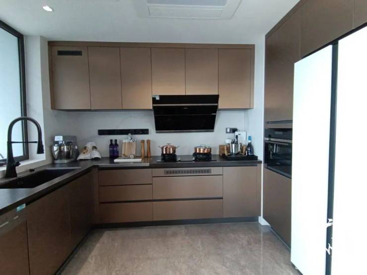 交付标准很高,懂得利用科技提升生活品质,为业主全屋配备中央空调+新风系统+中央净水器+智能中控系统,厨房除了油烟机、燃气灶、洗碗机等标配之外,还配置了双开门冰箱和热水器。