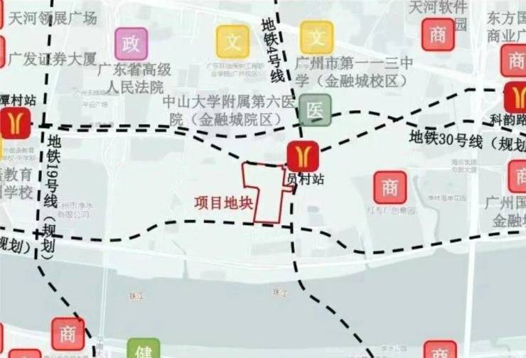 尤为值得一提的是,这是天河比较难得的靠近地铁站的盘,地块东北侧距离地铁5号线与11号线交汇的员村站仅150m,5号线+11号线可以连通广州最核心的几个商务圈---珠城、琶洲、天河北、白鹅潭等等,通达性很强。