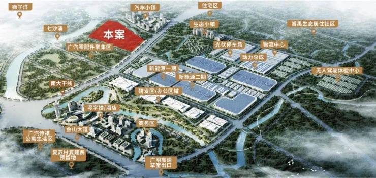 项目位于千亿汽车城板块核芯:周边以广汽集团领衔,已有42家新能源企业落户,2025年将超100家,汇聚10万+科创精英,60万+高薪企业人才。