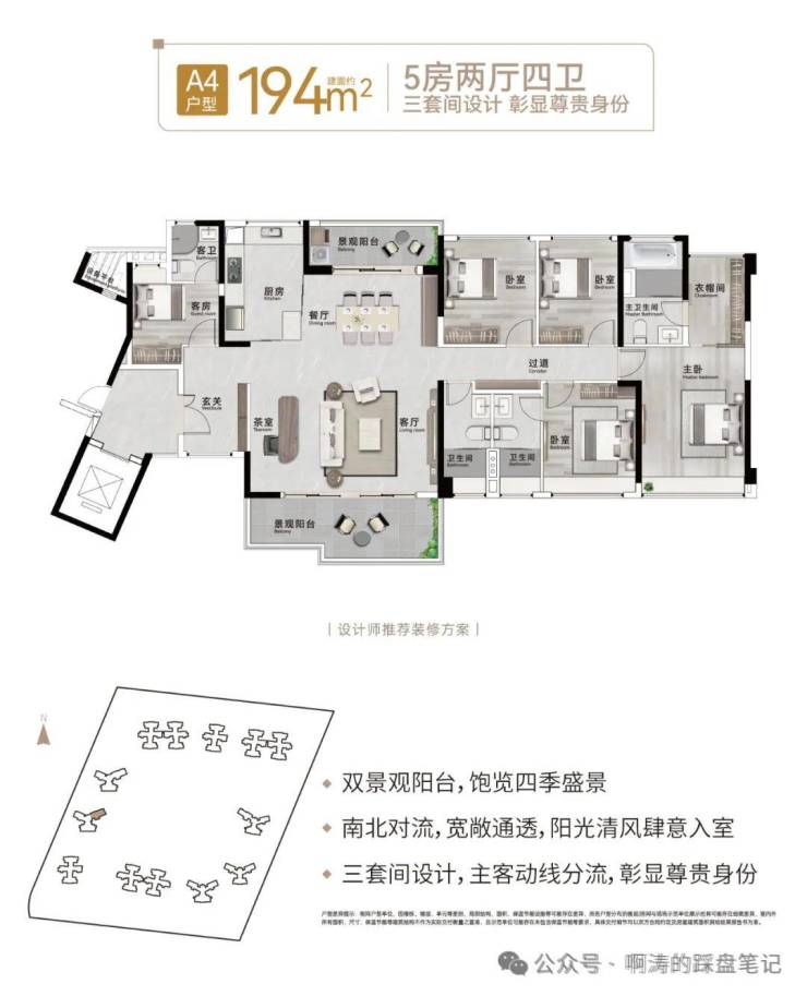 【194㎡:5房2厅4卫】(3套间)