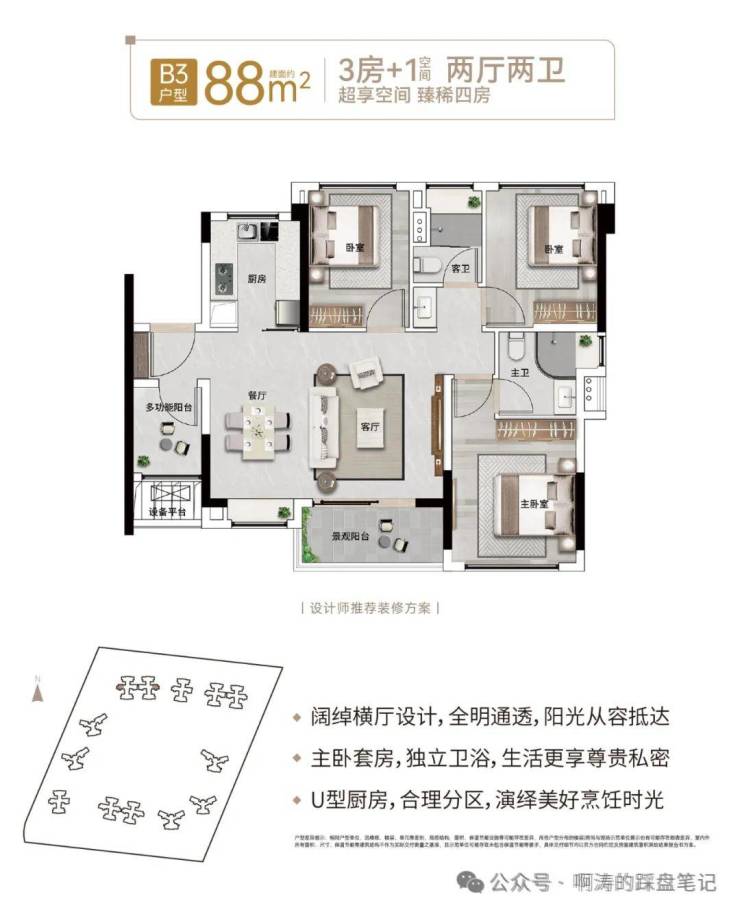 【88㎡:3房+1(空间)2厅2卫】(竖厅)