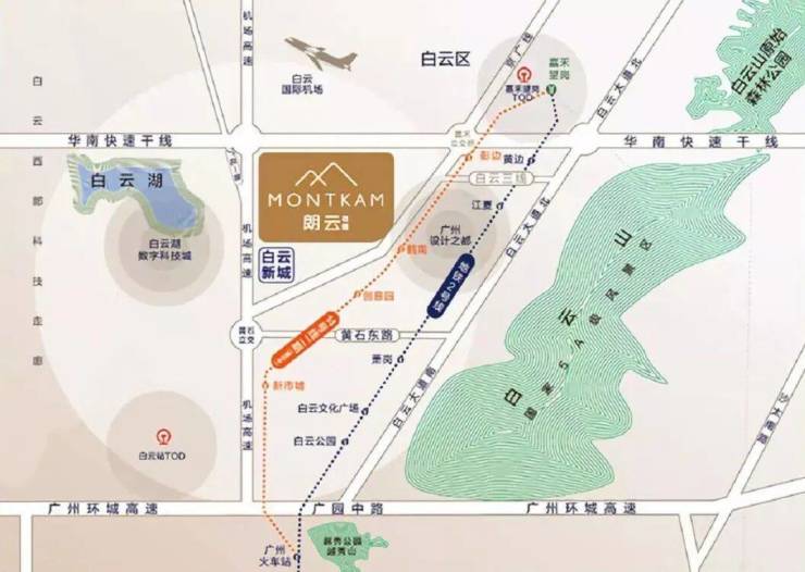 该盘位于在建的夏茅地铁站斜对面400米,跟白云湖数字科技城关系不是太大,挨着广花一路,距离黄石/机场路/白云新城等核心区非常近,车程大约15-20分钟是他的一大卖点,很多选择该盘的业主就来自这些附近核心片区