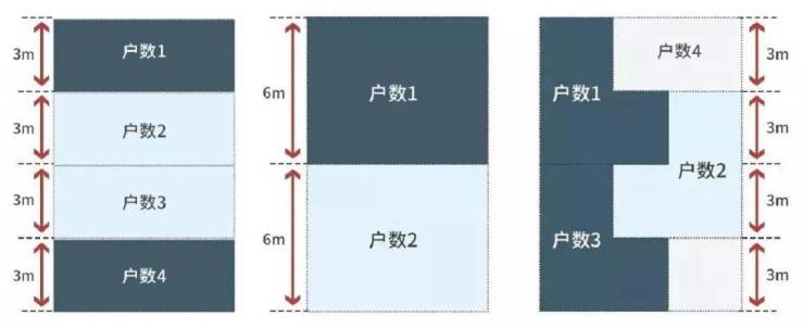 左侧为平层,中间为传统复式,右侧为咬合式复式