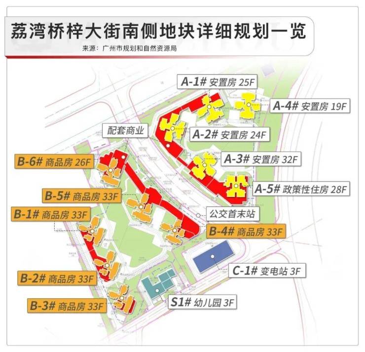 按照规划,项目商品房位于地块西侧,包括6栋层26-33层住宅,以T5风车型全南向户型规划布局。容积率3.4,计容建面9.86万㎡,得房率基本超100%,拥有1.8万㎡围合式大园林及1.5万㎡红线内外绿化与江景资源,致力打造成白鹅潭品质舒居标杆。