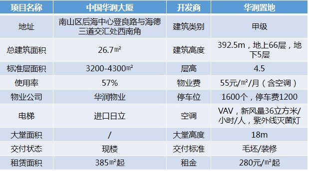 #中国华润大厦写字楼租赁 -基础数据