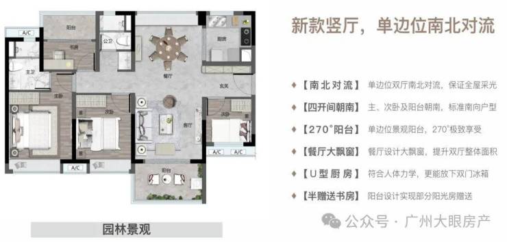 【113㎡四房二厅二卫】双厅南北对流,大飘窗设计,享受极致开阔!